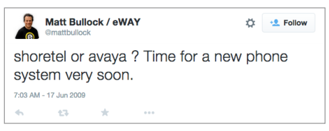 Es posible que esa persona no haya tenido muchos seguidores en Twitter, y más que probablemente solo una fracción de ellos haya visto el tuit. Una de las dos compañías mencionadas, sin embargo, estaba escuchando: Avaya. Avaya probablemente ni siquiera estaba siguiendo a ese individuo. Después de todo, en algunas redes sociales como Twitter, no tienes que ser "amigo" de alguien para escuchar lo que dice y relacionarse con él. En un caso de estudio bien documentado, Avaya respondió de manera profesional a ese tweet y cerró un acuerdo de $ 250,000 con este caballero 13 días después. No hay mejor historia para ilustrar el poder de la escucha social para generar negocios. El hecho de que este incidente sucedió hace muchos años, y el uso de las redes sociales ha crecido exponencialmente desde entonces, insinúa el hecho de que las conversaciones sociales que pueden generar clientes potenciales están en todas partes.